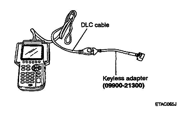 7. Disconnect keyless adapter (09900 - 21300) from DLC cable and then proceed to self-diagnosis with DLC cable connected.