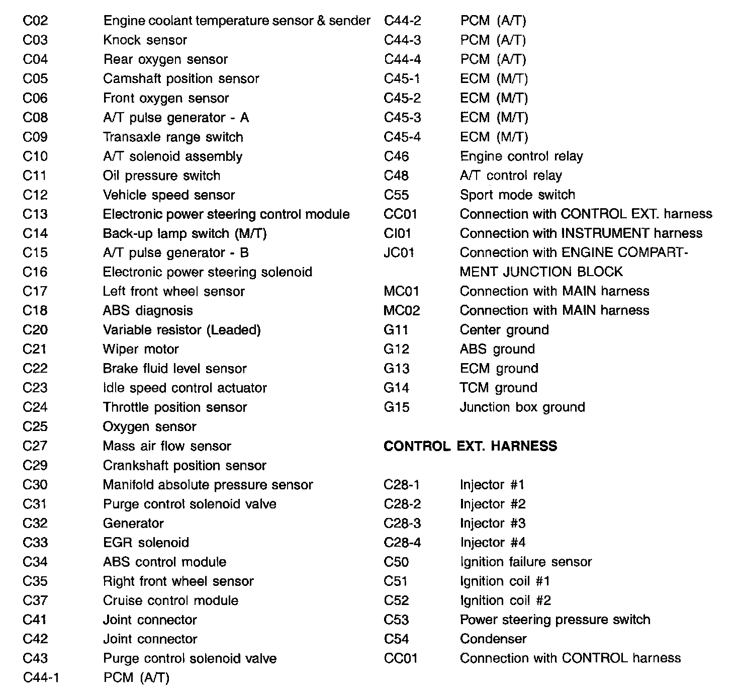 Control Harness Index: