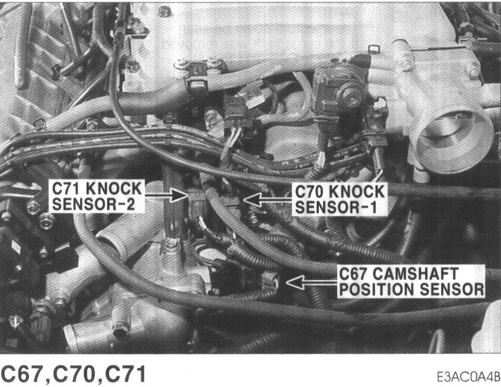 C02 Engine Coolant Temperature Sensor & Sender (DOHC), C03 Knock Sensor, C05 Camshaft Position Sensor: