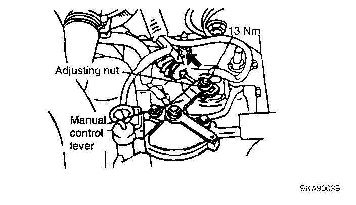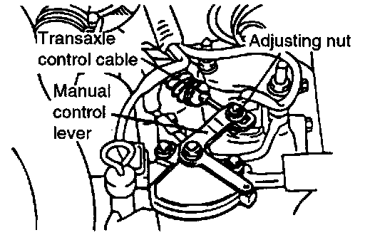 2. Loosen the control cable to manual control lever coupling nut to free the cable and lever.