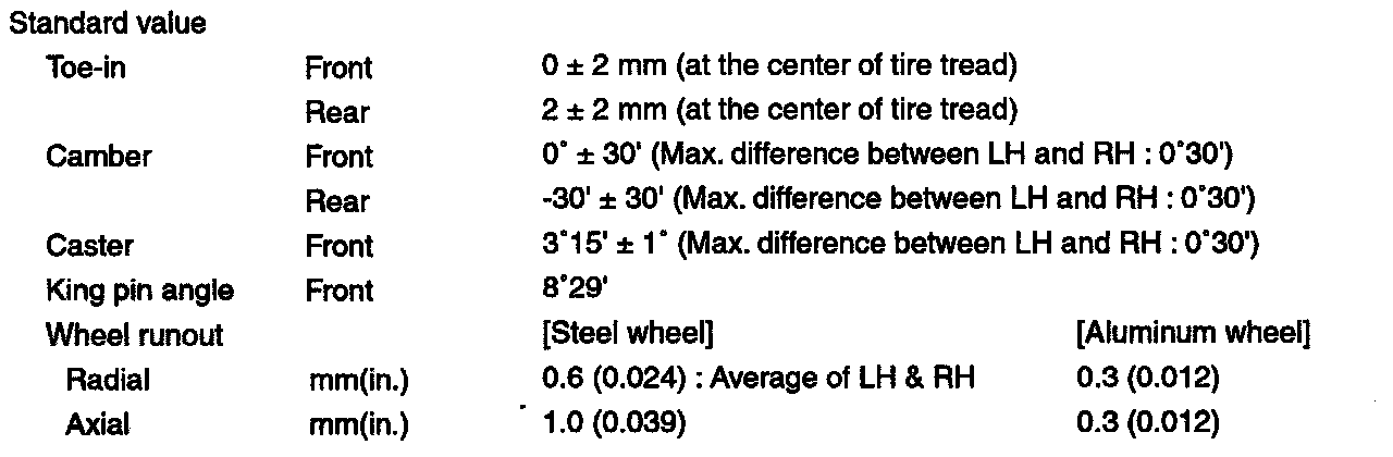 Front/Rear Alignment: