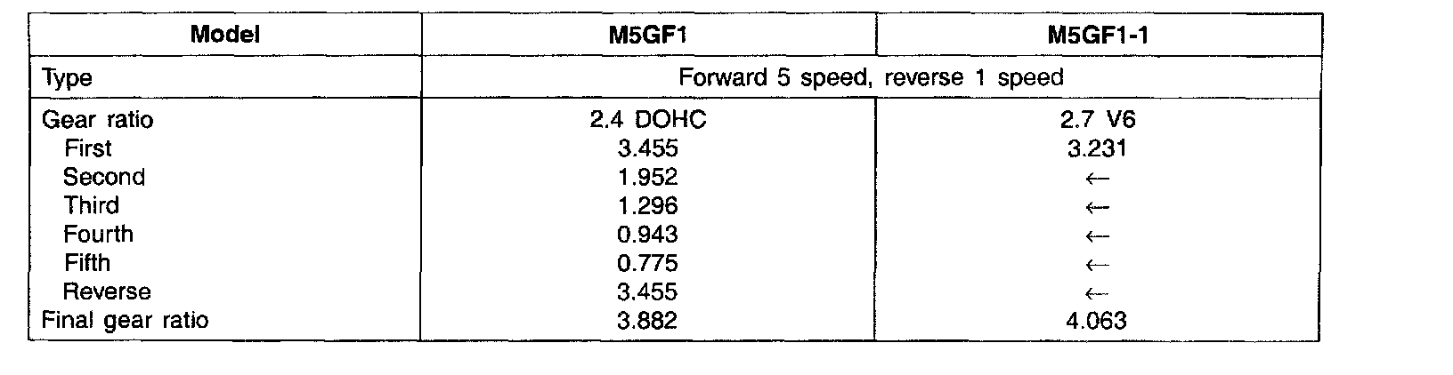 SPECIFICATIONS (M/T)
