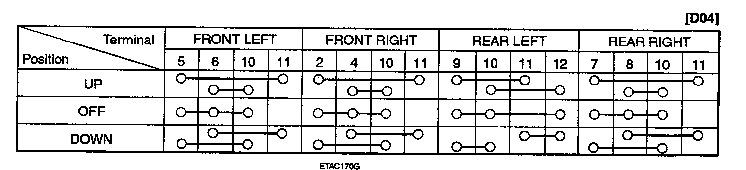 Check for continuity between the terminals. If continuity is not as specified in the table, replace the