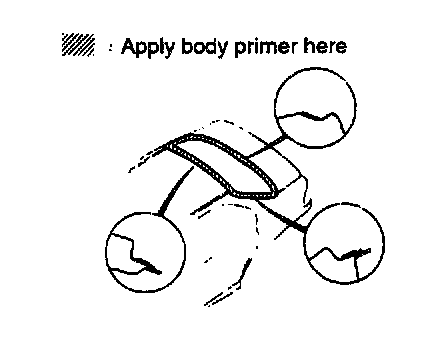 9. Apply the light coat of body primer to the original sealant remaining around the body flange. The glass should be installed 10 minutes after you apply the primer.