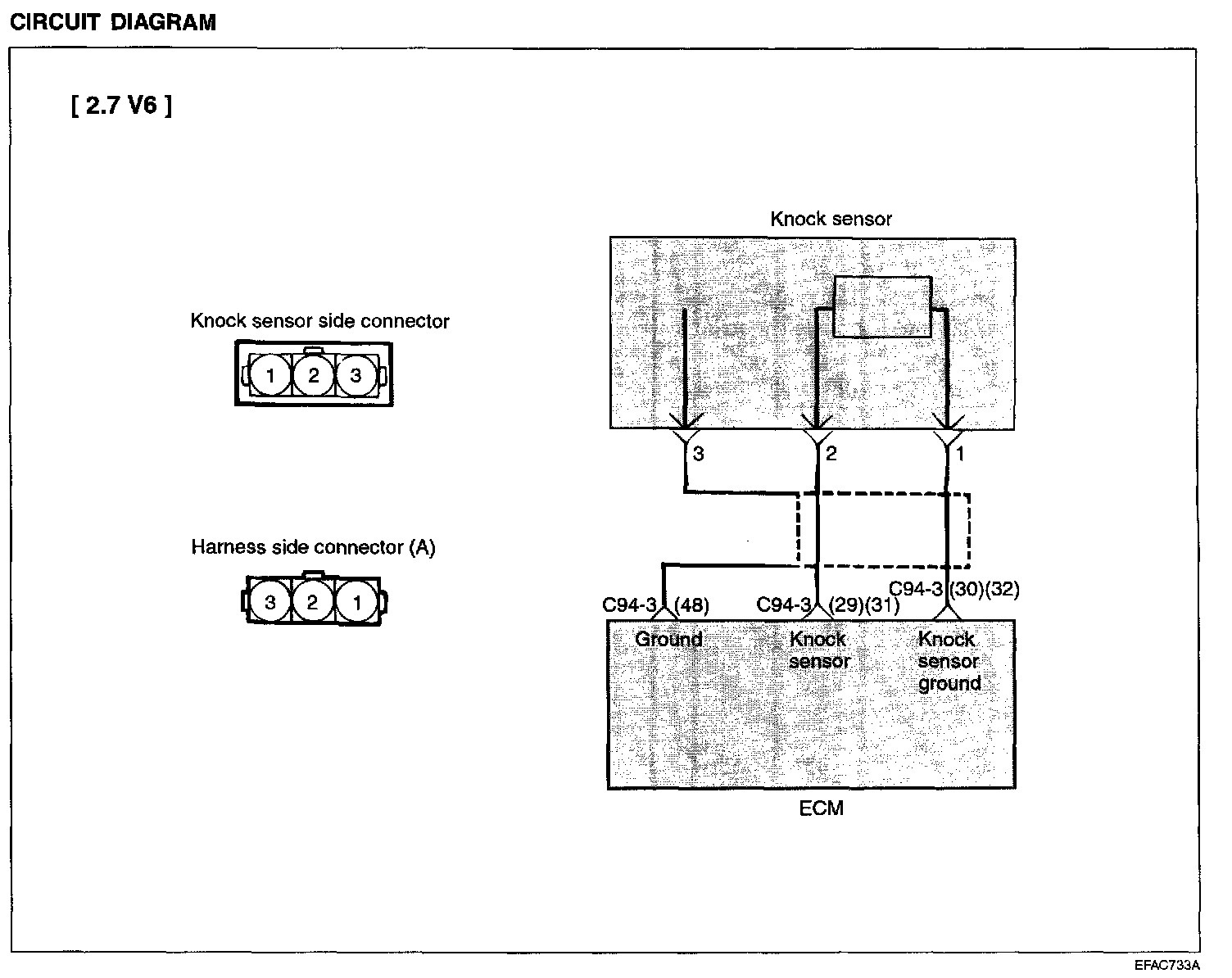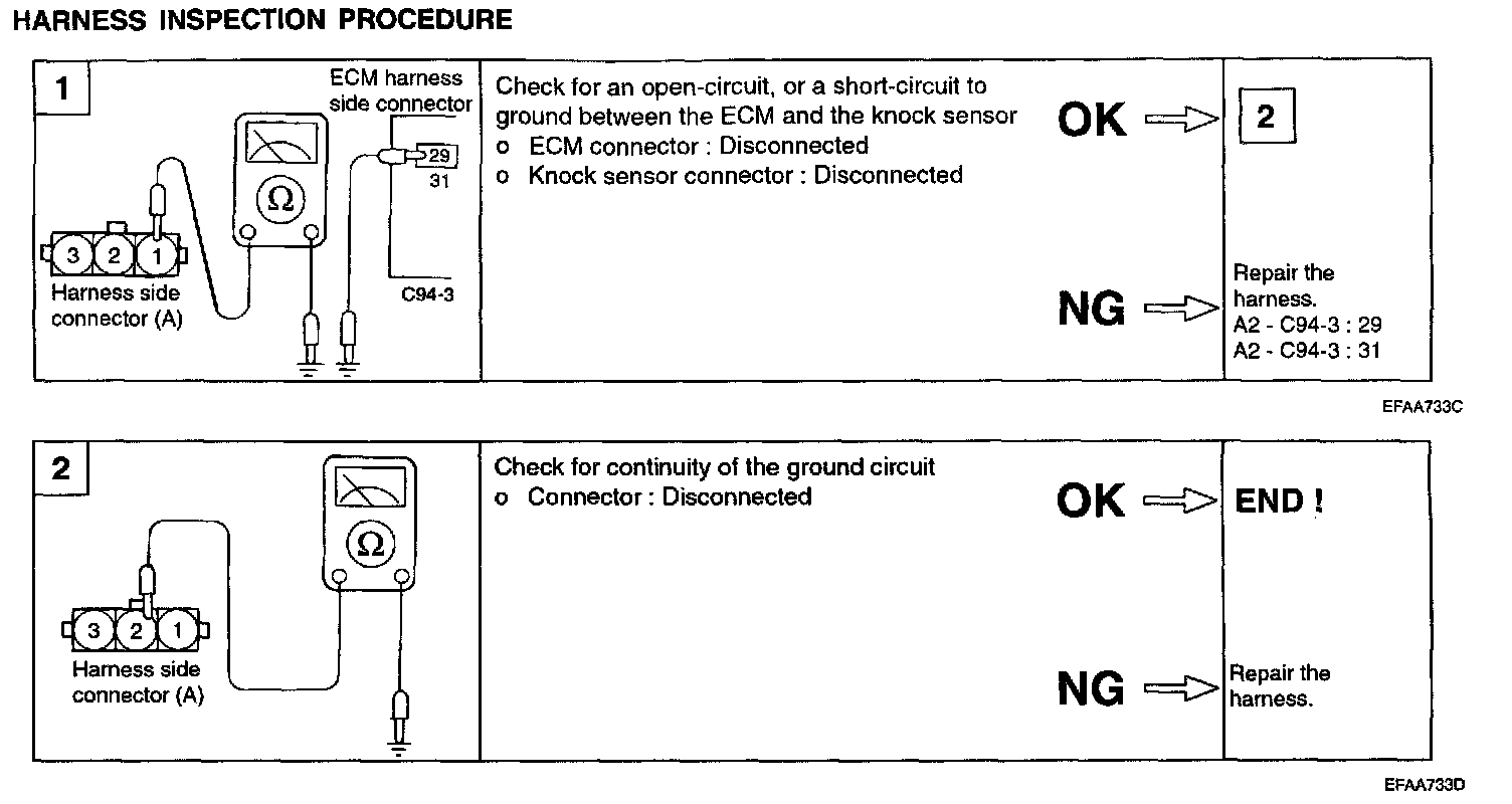 3. If the resistance is continual, replace the knock sensor.