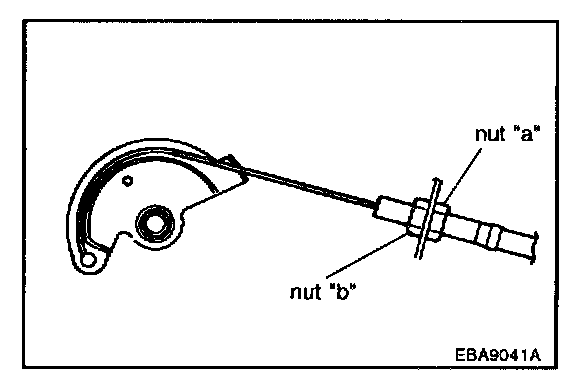 2. Tighten nut "b" after pulling the cable tightly.