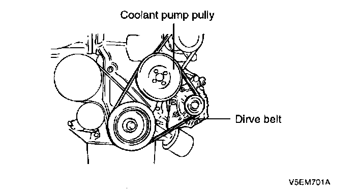 1. Remove the crankshaft pulley, coolant pump pulley and drive belt.