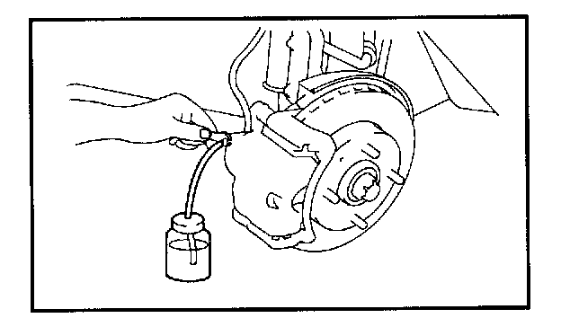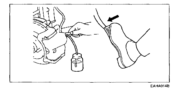 4. Depress the brake pedal a few times. Then loosen the bleeder screw (with the brake pedal still depressed.), and tighten it after the brake fluid stops flowing.