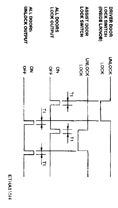 If IG1 is on and a crash signal is received, send an unlock pulse to the door locks. Unlock signal must occur within 12.5 msec after crash signal is received. Unlock pulse is 5 sec period. If crash unlock is not used in a particular variant then the crash input is to be left floating.