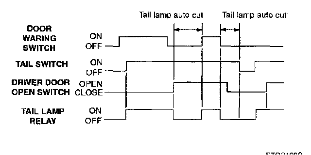 If tail lamps have been cut automatically, and then the tail lamp switch is turned off and on, then tail lamp is switched on and auto cut function is cancelled. If tail lamps have been cut automatically, and the ignition key is inserted, then tail lamps are turned on.
