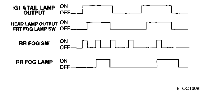 - Headlamps are on by switch or auto light or front fog switch is on, then if rear fog switch is contacted the rear fog lamps are turned on.
