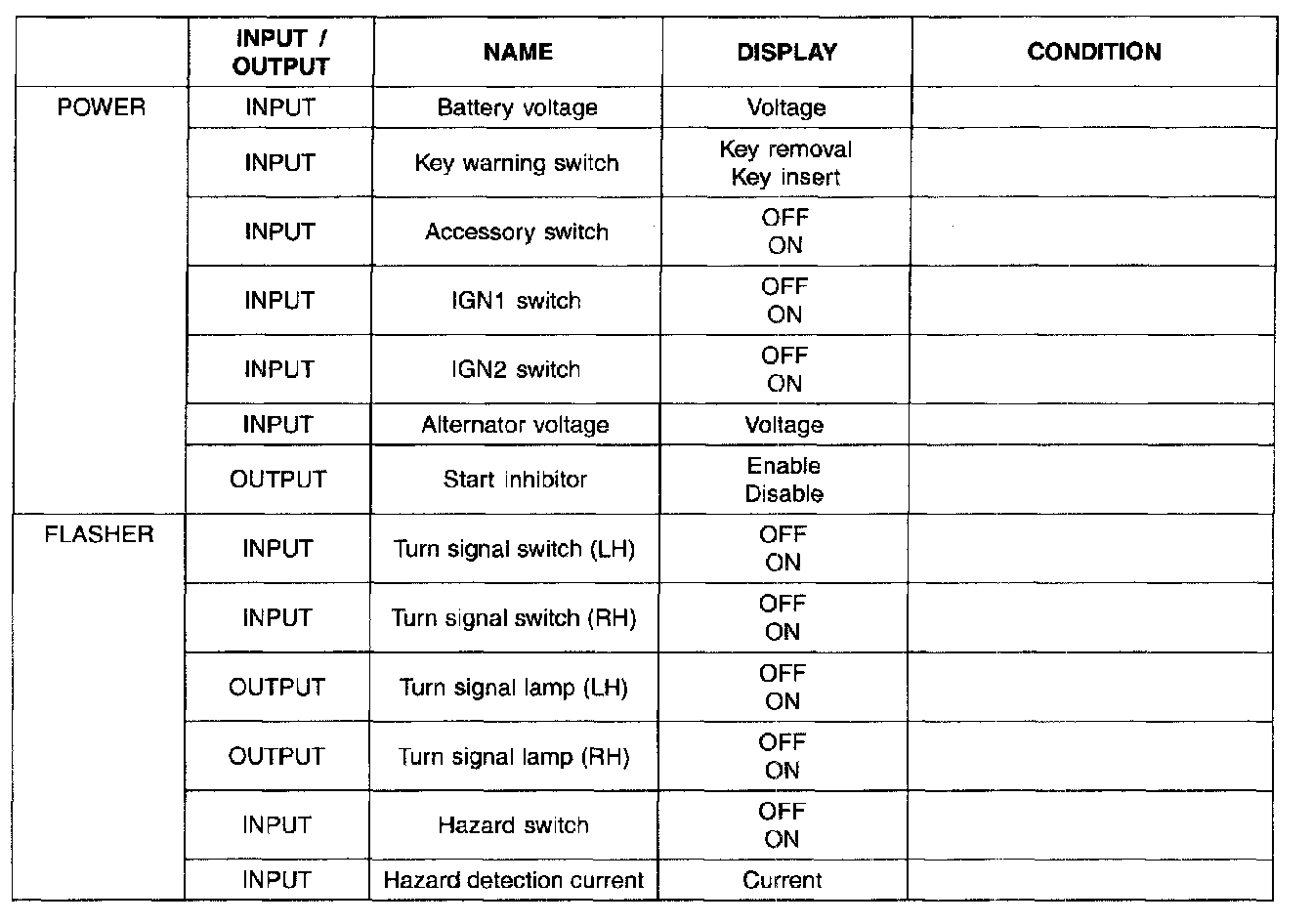 INPUT SIGNAL ACTUATION TEST