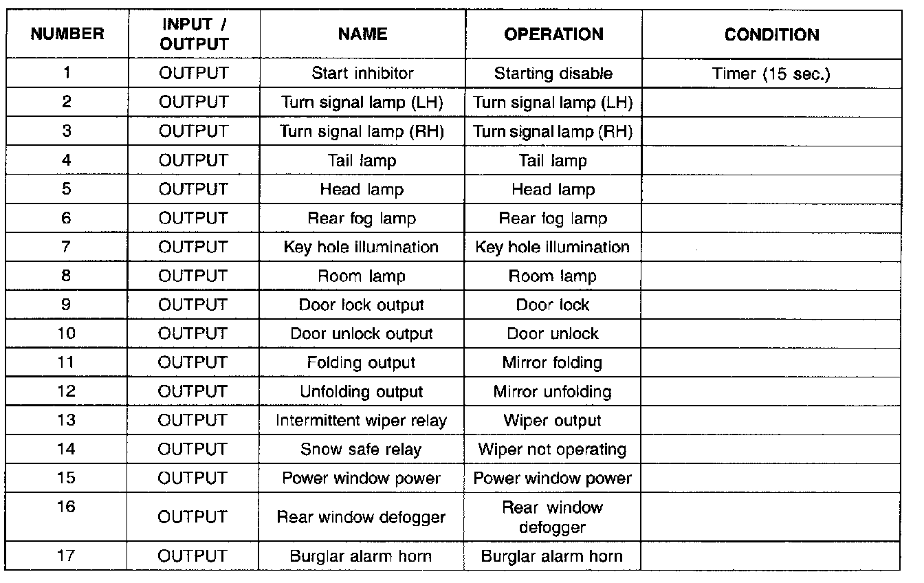 The components which is on and off as like turn signal lamp, seat belt indicator, burglar alarm horn, chime bell and front wiper relay are displayed "ON" while controlling.