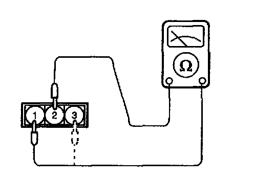 3. Connect an analog ohmmeter between terminals 2 (sensor ground) and terminal 1 (sensor output).