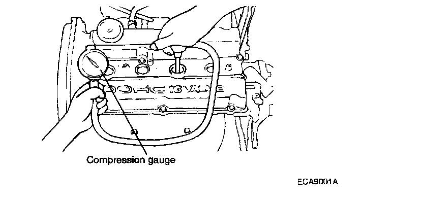CHECKING COMPRESSION PRESSURE1. Before checking engine compression, check the engine oil level. Also check that the starter motor and battery are all in normal operating condition.