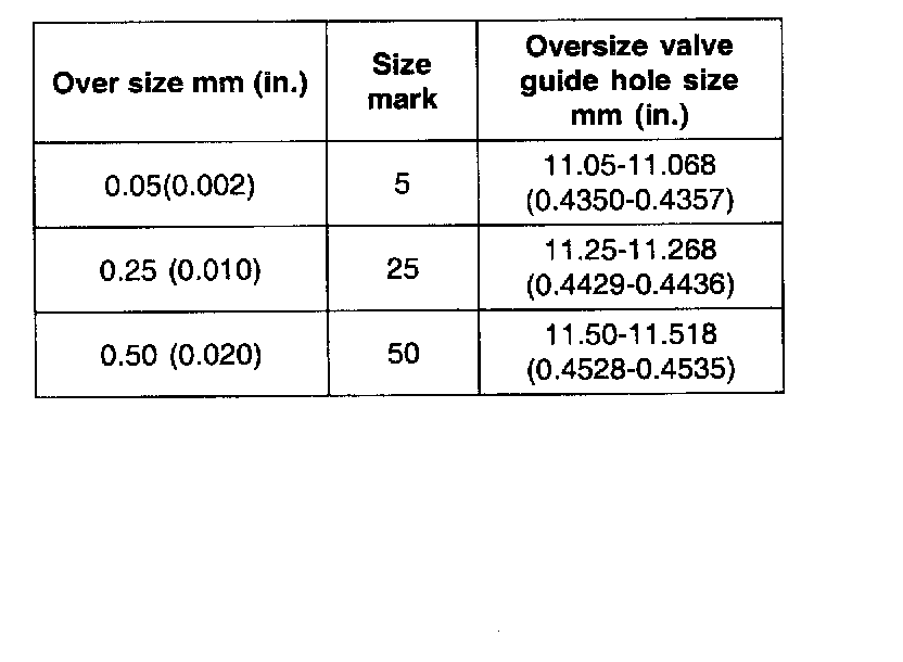 Oversize rework dimensions of valve guide hole (both intake and exhaust)