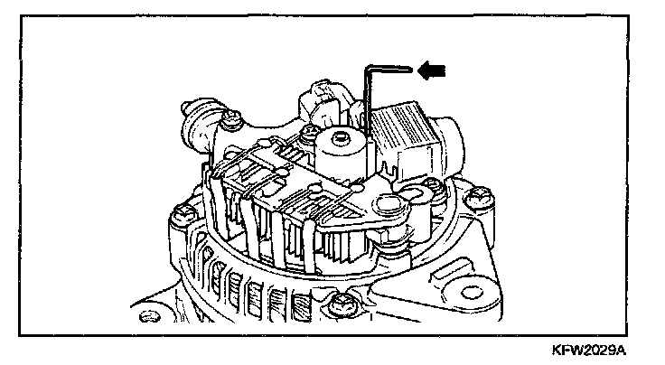 Before the rotor is attached to the rear bracket, insert a wire through the small hole in the rear bracket to lock the brush. After the rotor has been installed, the wire can be removed.