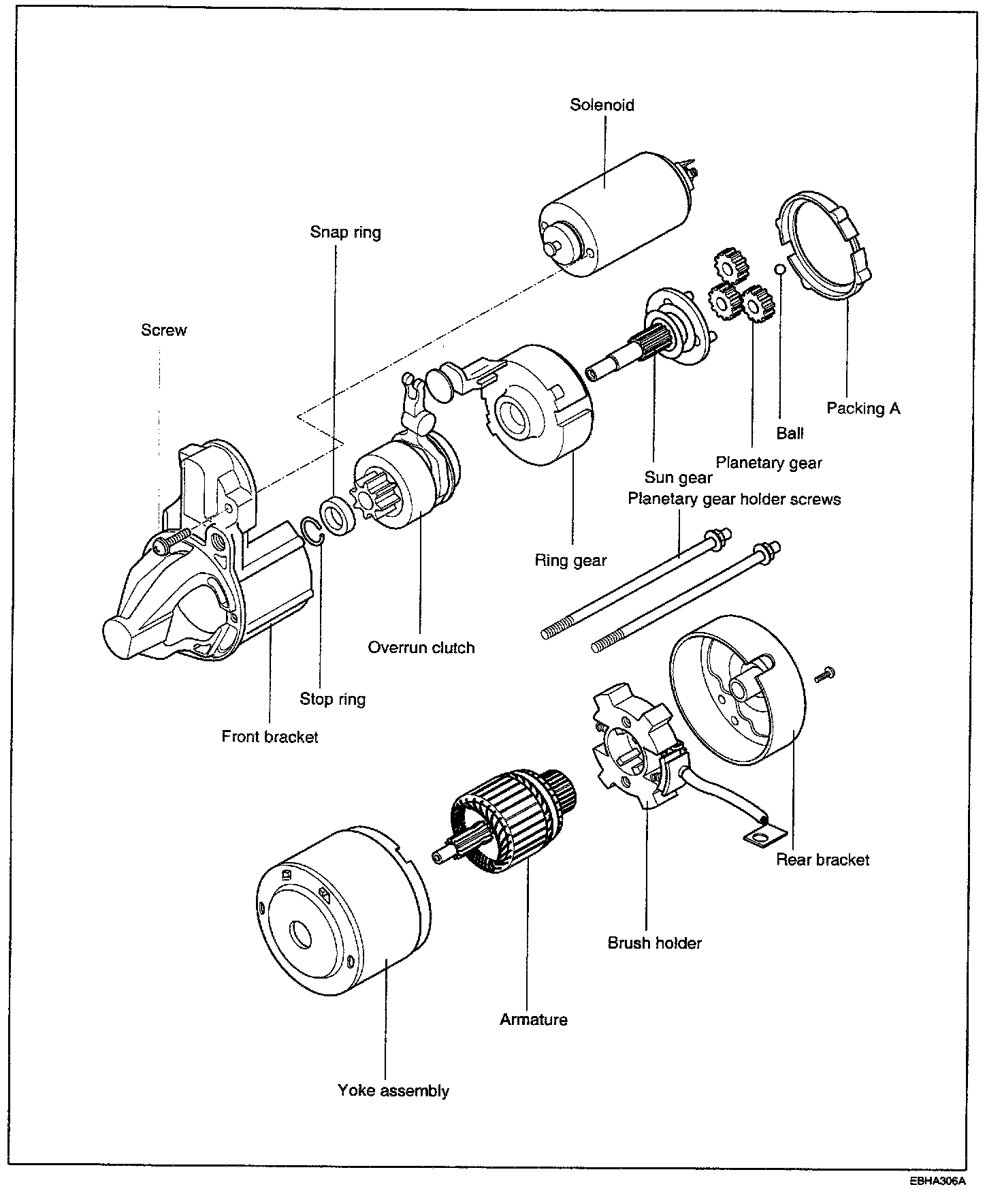 4. Remove the starter motor assembly.