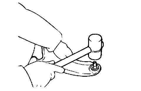 3. Using a plastic hammer, tap the ball joint out of the lower arm.