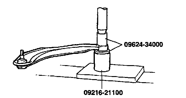 4. Install the new bushing on the lower arm by using Special Tools (09216 - 21100, 09624 - 34000).
