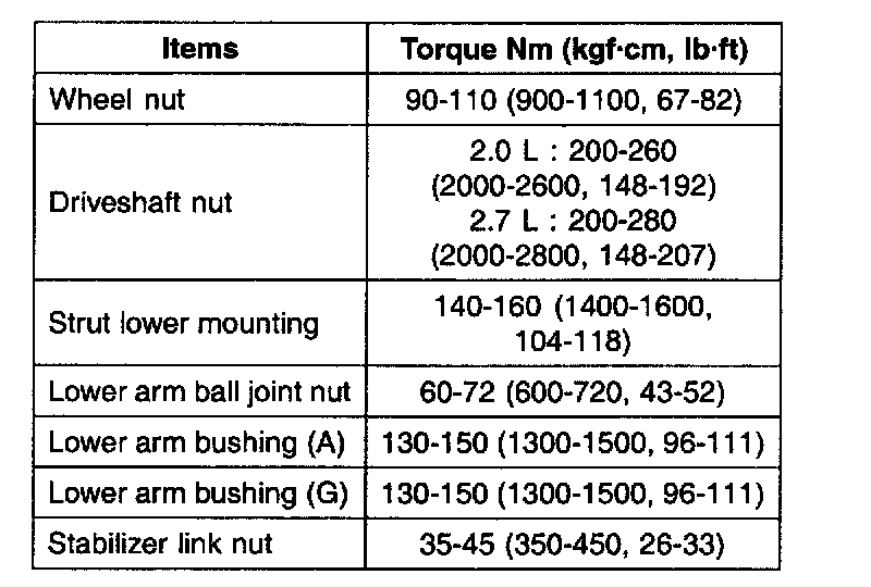 Standard value...................................3.5 - 10 Nm (35 - 100 kgf-cm, 2.6 - 7.4 inch lbs.)