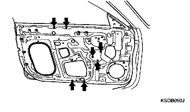 5. Remove the door grip handle mounting bracket, speaker and door trim seal.