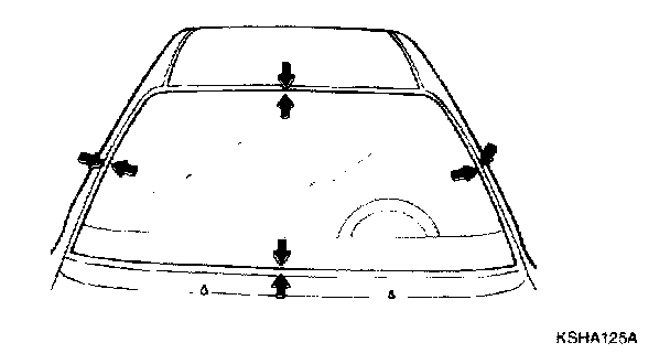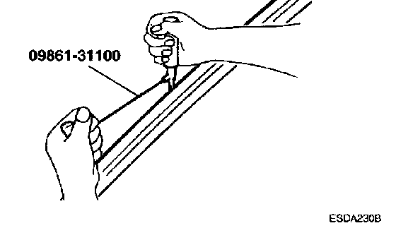 CAUTION: Be careful not to remove more adhesive than necessary, and also not to damage the paintwork on the body surface with the knife. If the paintwork is damaged, repair the damaged area with touch-up paint.