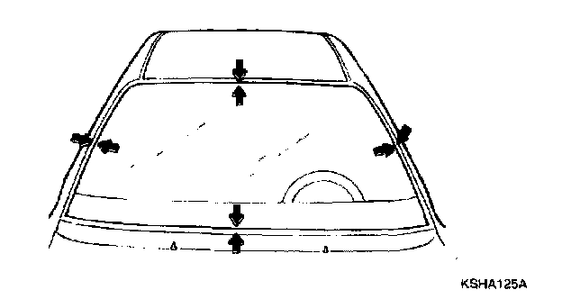 13. Perform a water-leak test for the windshield. Use a cold water spray, being careful not to direct a powerful stream of water on the new adhesive material. Allow water to spill over the edges of the glass.