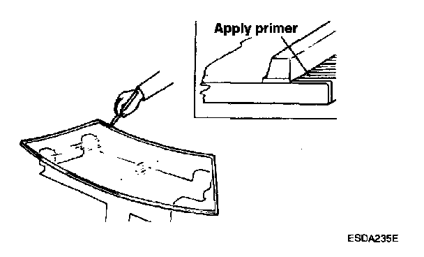 10. Apply a light coat of body primer to the original sealant remaining around the window opening flange. The glass should be installed within 5 minutes after you apply the primer.