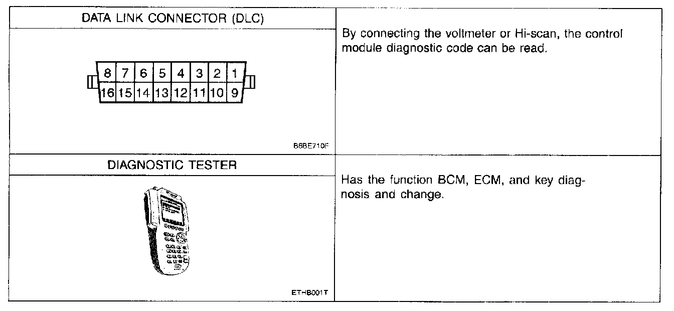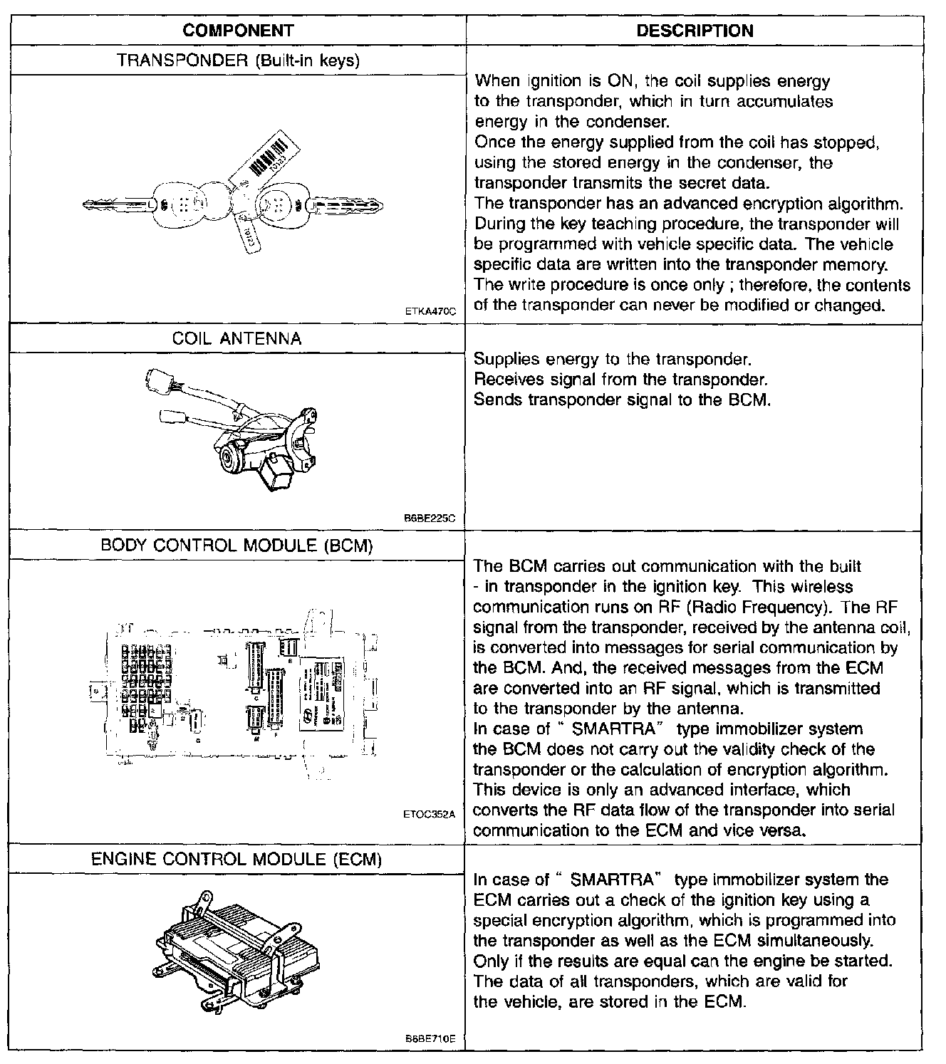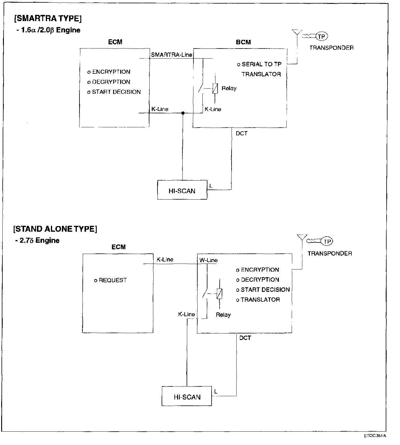 The "SMARTRA" type immobilizer system is applied to the 1.6 alpha engine and 2.0 beta engine.