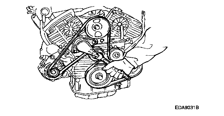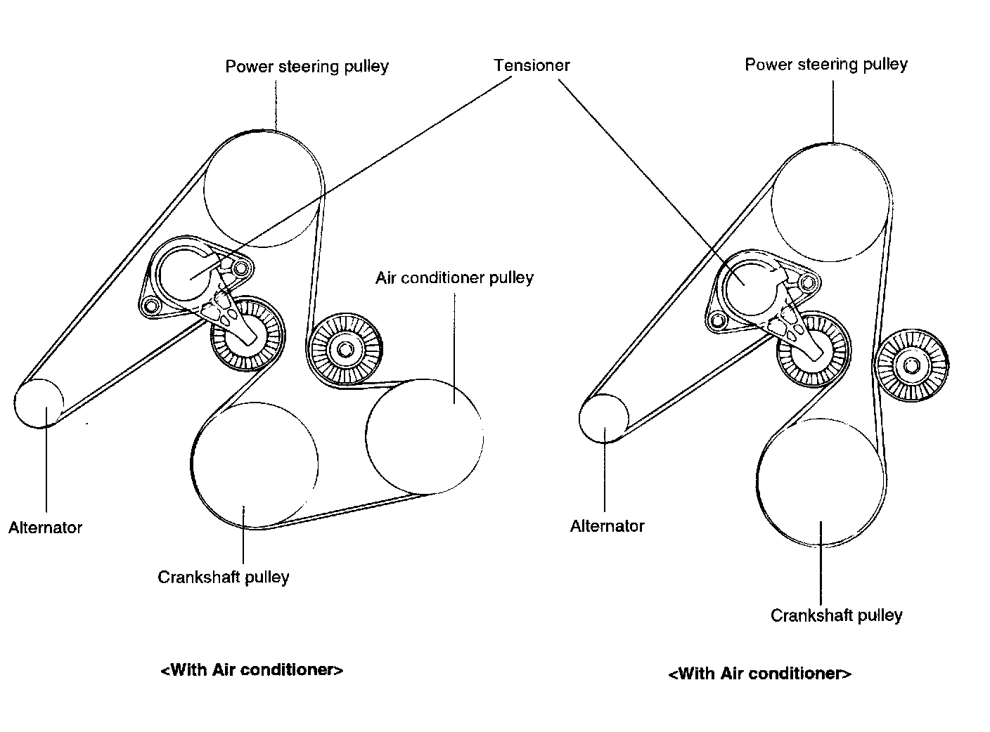 2. Install the belt in the glowing order. [Alternator Power steering Crankshaft pulley Air conditioner pulley.]