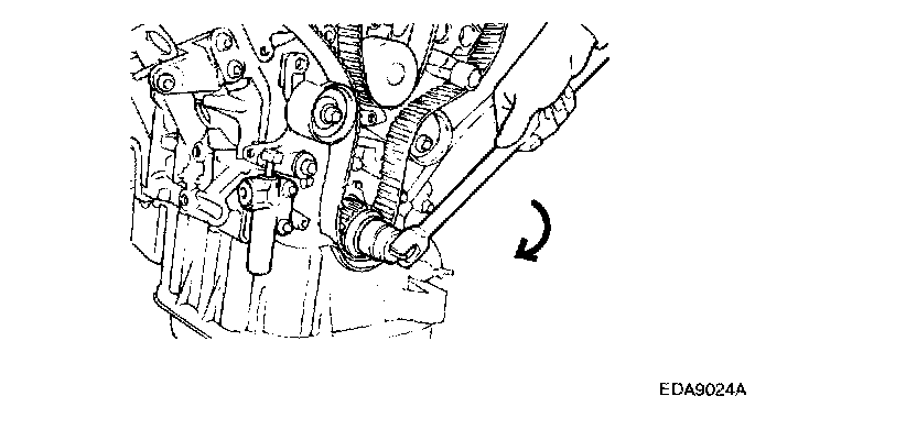 6. Unbolt the tensioner to remove the timing belt.