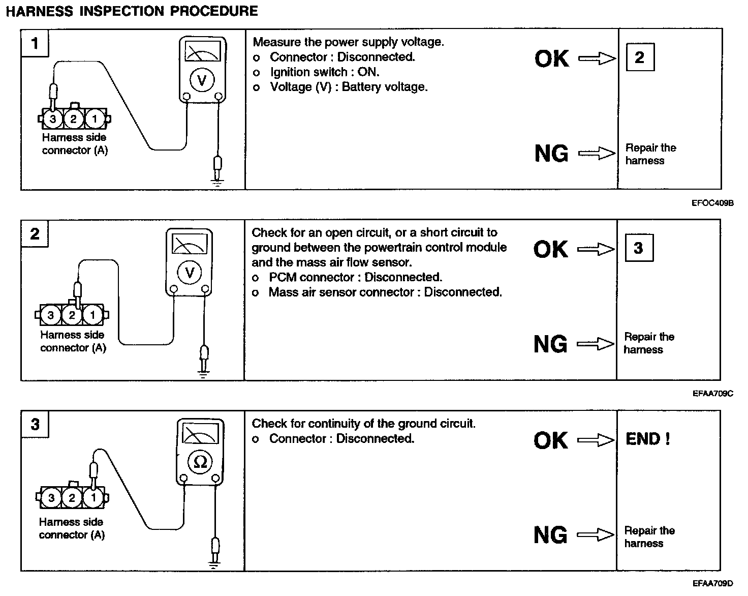 1. If the engine stalls occasionally, start the engine and shake the MAF sensor harness. If the engine stalls, check for poor contact at the MAF sensor connector.