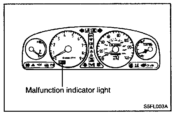 Immediately after the ignition switch is turned on, the MIL is lit for 5 seconds to indicate that the light operates normally.