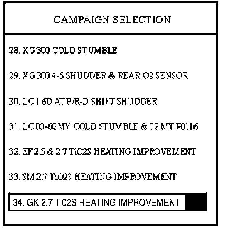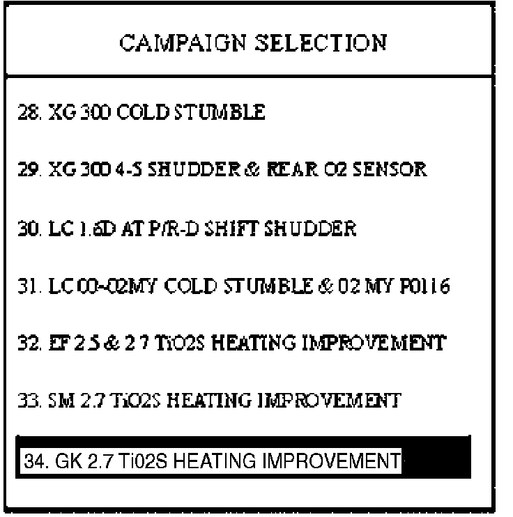 For Sonata, select option 32. EF 2.5, 2.7 Ti02S HEATING IMPROVEMENT and press ENTER.