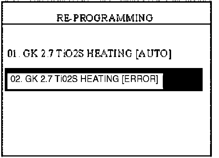 In the event menu option 01. GK 2.7 Ti02S HEATING [AUTO] fails to download the new program, option 02. GK 2.7 Ti02S HEATING [ERROR] must be used.