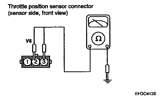 3. Connect a pointer type ohmmeter between terminal 2 (sensor ground) and terminal 3 (sensor output) for 2.7 V6.