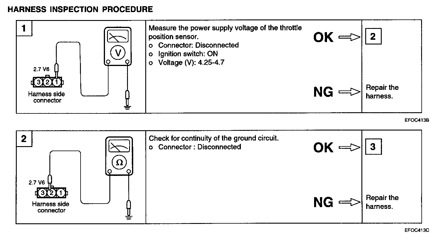 2. Measure resistance between terminal 2 (sensor ground) and terminal 1 (sensor power) for 2.7 V6.