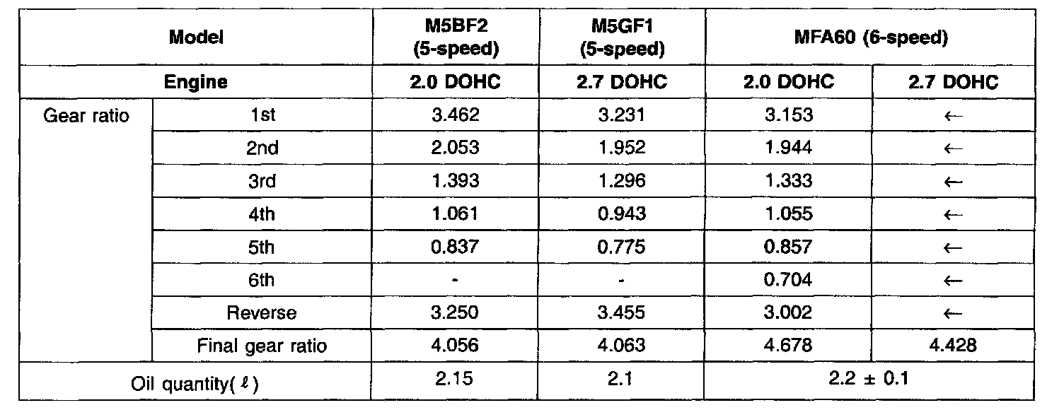 SPECIFICATIONS (M/T)