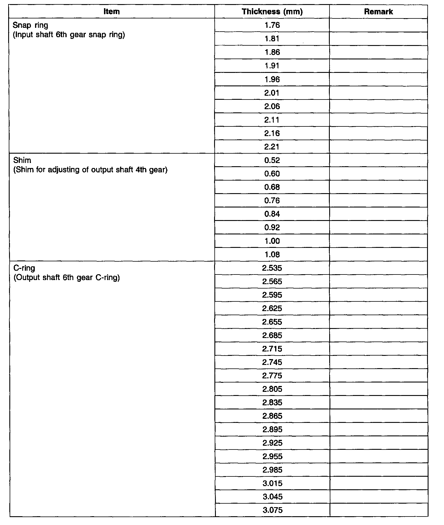 SPACER (6-SPEED M/T)