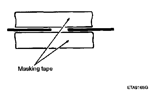 Wipe the glass adjacent to the broken heater line, clean with silicone remover and attach the masking tape as shown. Shake the conductive paint container well, and apply three coats with a brush at intervals of about 15 minutes apart. Remove the tape and allow sufficient time for drying before applying power. Per a better finish, scrape away excess deposits with a knife after the paint has completely dried. (Allow 24 hours).
