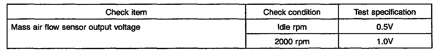 3. If the engine can idle even if the MAF sensor output voltage is out of specification, check for the following conditions;