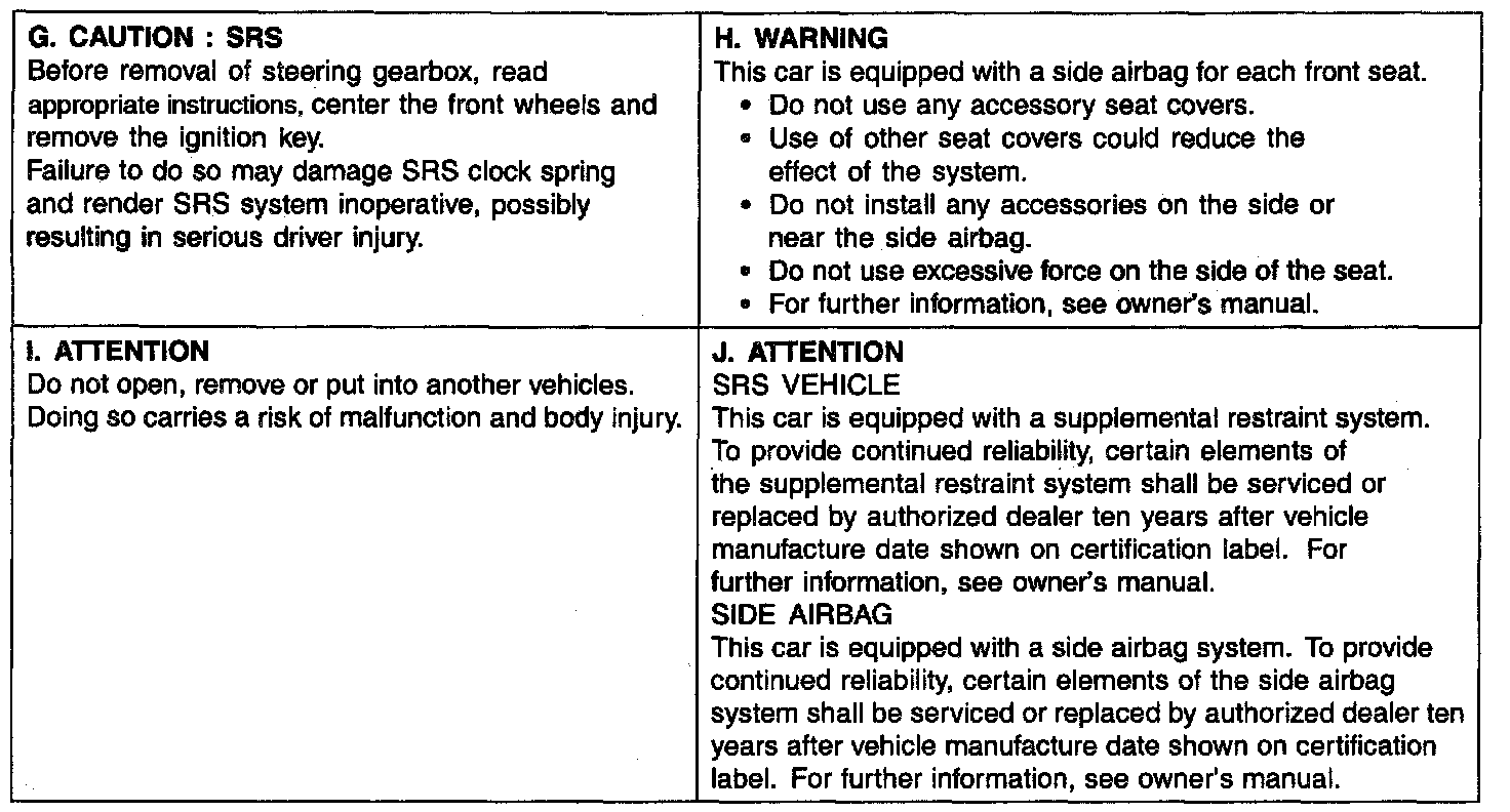 A number of caution labels relating to the SRS are found in the vehicle, as shown in the following illustration. Follow label instructions when servicing the SRS.