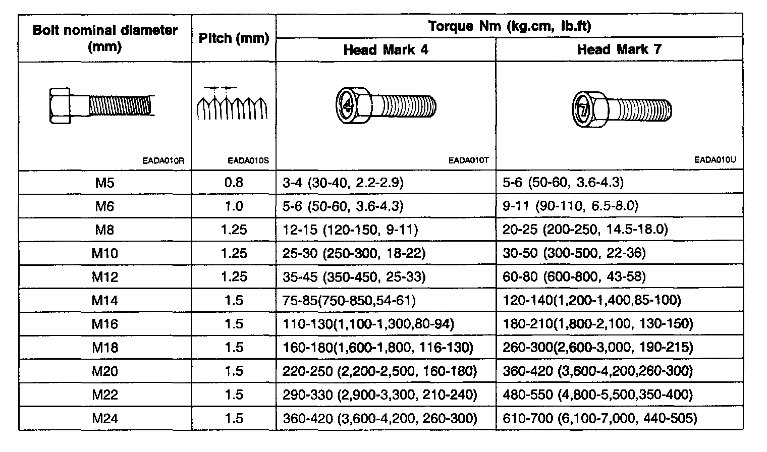 3. If you reduce the torque's in the table to the percentage indicated below, under the following conditions, if will be the standard value.