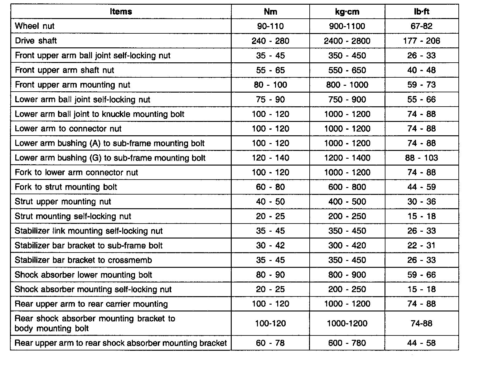 TIGHTENING TORQUE