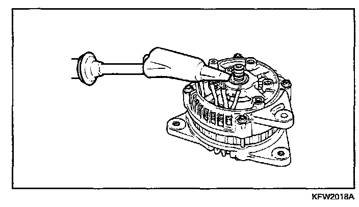 Before the rotor is attached to the rear bracket, insert a wire through the small hole in the rear bracket to hold the brush. After the rotor has been installed, the wire can be removed.