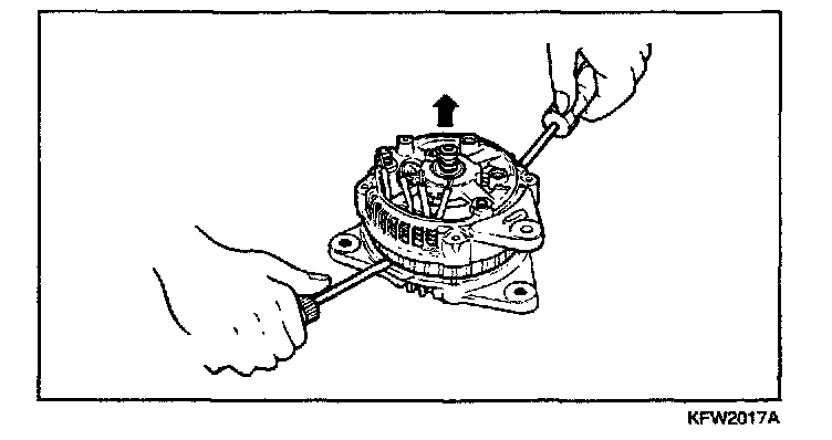 2. Insert a flat screwdriver between the front bracket and stator core, and pry downward.