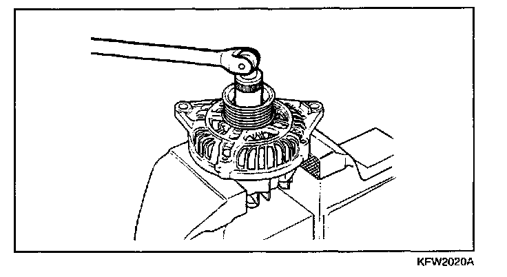 4. Remove the pulley nut, spring washer, pulley, and spacer.