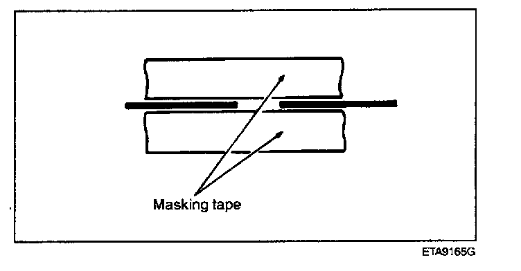 Wipe the glass adjacent to the broken heater line, clean with silicone remover and attach the masking tape as shown. Shake the conductive paint container well, and apply three coats with a brush at intervals of about 15 minutes apart. Remove the tape and allow sufficient time for drying before applying power. For a better finish, scrape away excess deposits with a knife after the paint has completely dried. (Allow 24 hours).