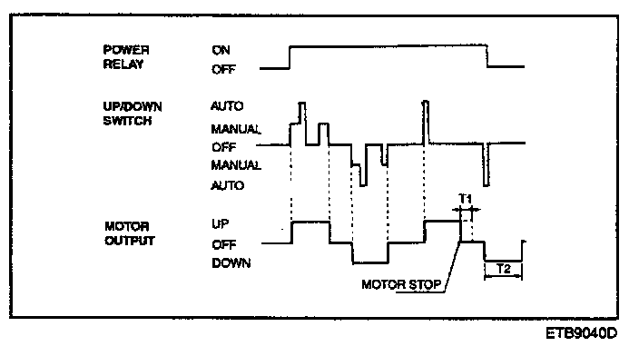 Check that components operate according to the following timing chart.1. Manual power window function.